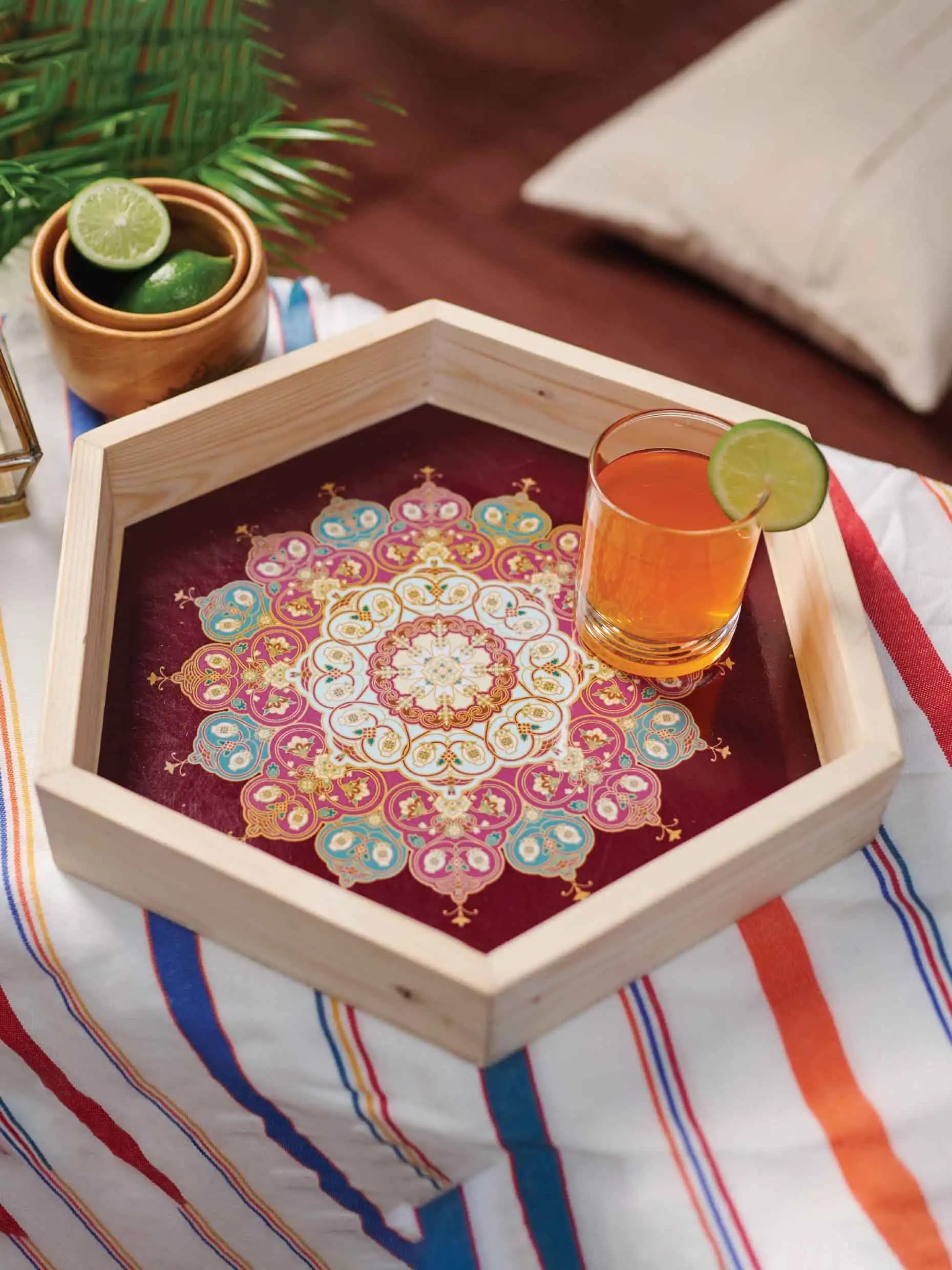 Feature: Place ONE bold artistic cushion (like a detailed Sufism print) in the center. This creates a focal point without looking cluttered.